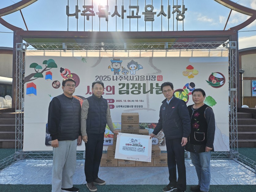 나주목사고을시장 김장김치 전달식 페이지 정보 작성자 관리자 댓글 0건 조회 3회 작성일 25-12-15 16:35 목록 본문 나주까리따스노인복지센터는 지난 12월 4일(목), 나주목사고을시장으로부터 사랑의 김장김치 13상자(10KG)를 후원받아 재가어르신 13세대에 전달하였습니다. 맛있는김치를 후원해주신 나주목사고을시장 상인여러분들에게 감사의 말씀을 드립니다 다음글나주까리따스노인복지센터 신규 홈페이지 운영 알림 25.11.15 댓글 0 댓글목록 등록된 댓글이 없습니다.
